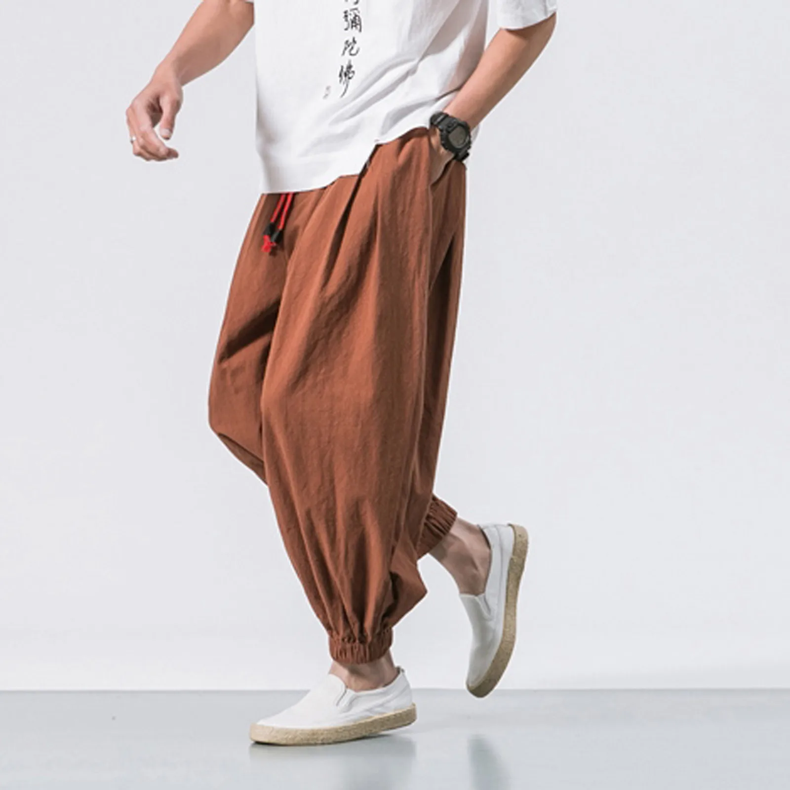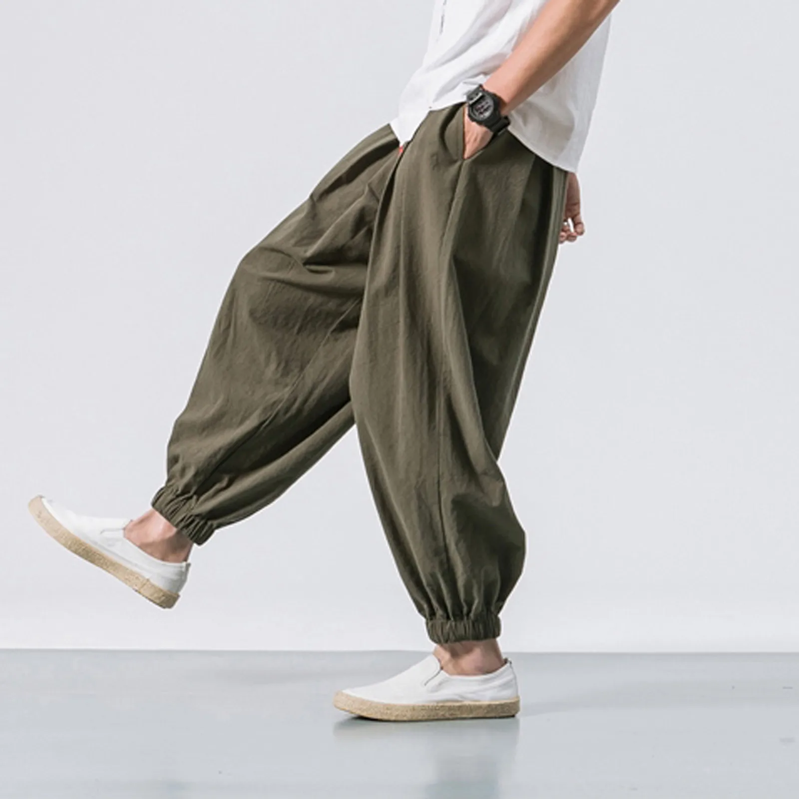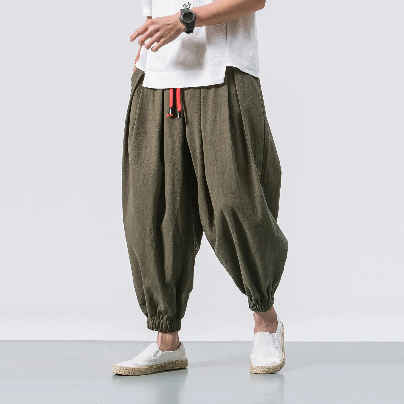 Мужские модные повседневные свободные однотонные шаровары, широкие эластичные штаны