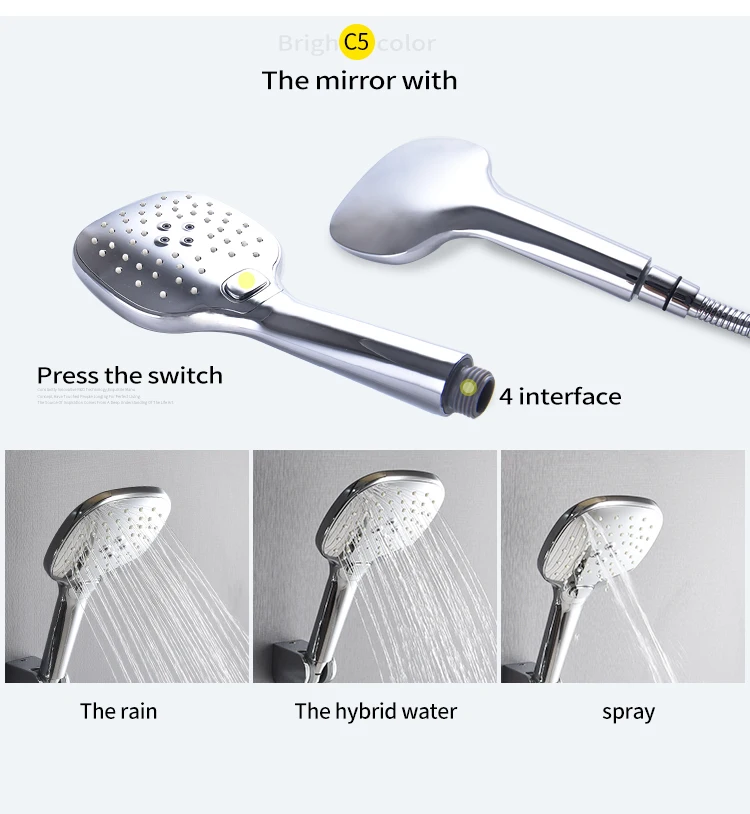 Дождь, гибридная вода, спрей C7 зеркало Ручной душевой светильник из АБС-пластика с защитой от окисления 4 кран, силикон, гальваническое покрытие