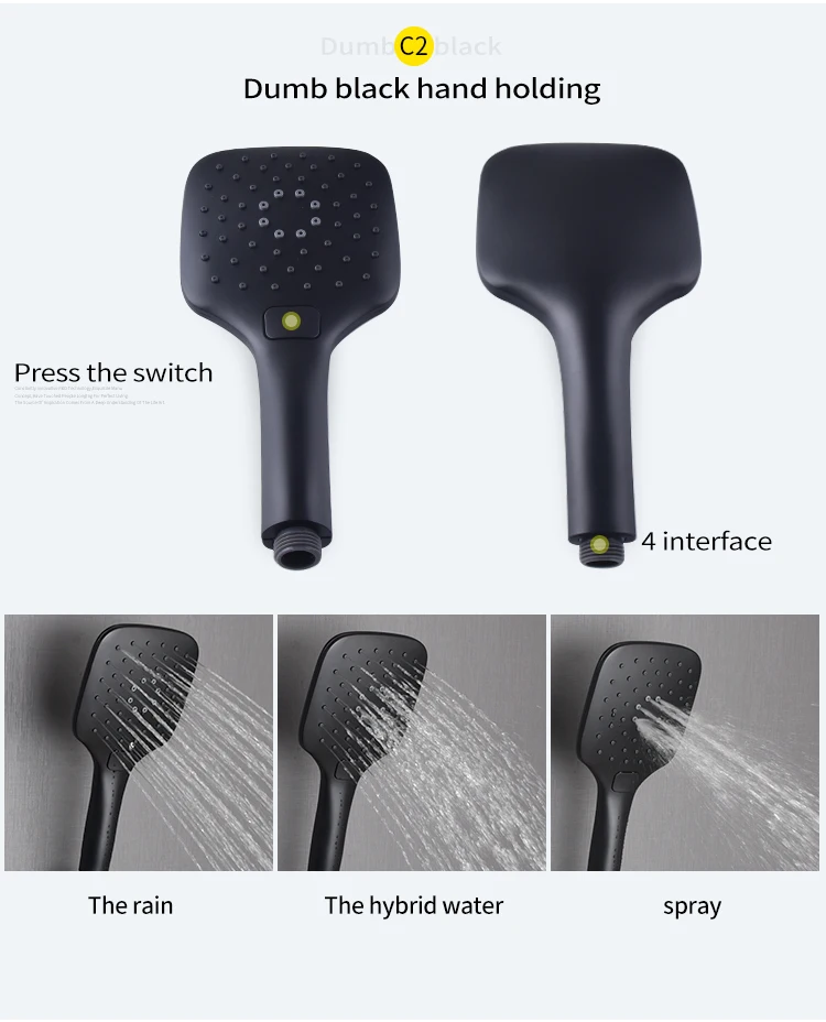 Дождь, гибридная вода, спрей C2 тупой черный ручной держатель Нажмите переключатель, 4 интерфейса