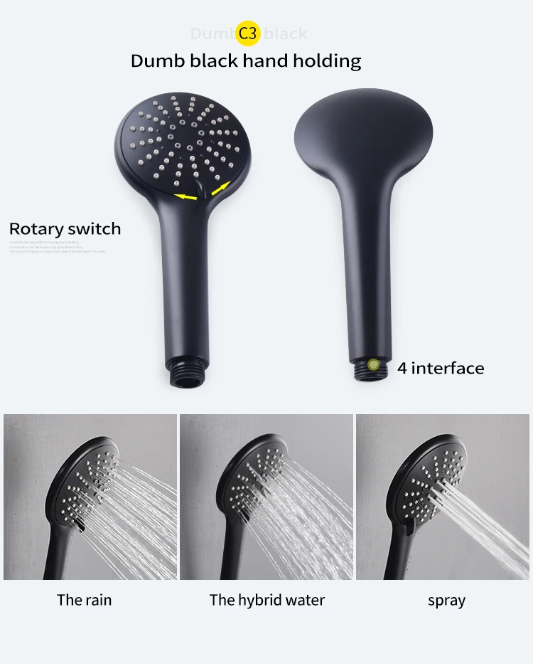 Дождь, гибридная вода, спрей C3 тупой черный ручной держатель Поворотный переключатель, 4 интерфейса