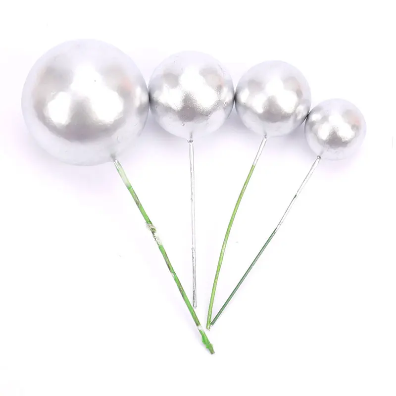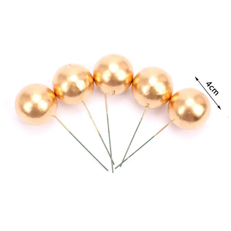 5 шт., для дня рождения, Золотой/Серебряный шар, украшение для торта, Топпер, креативный фруктовый десертный декор, вставка из бисера для дня рождения