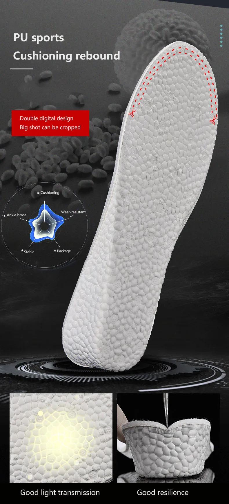 8. Стелька мягкая и может быть подрезана, подходит для различных людей.