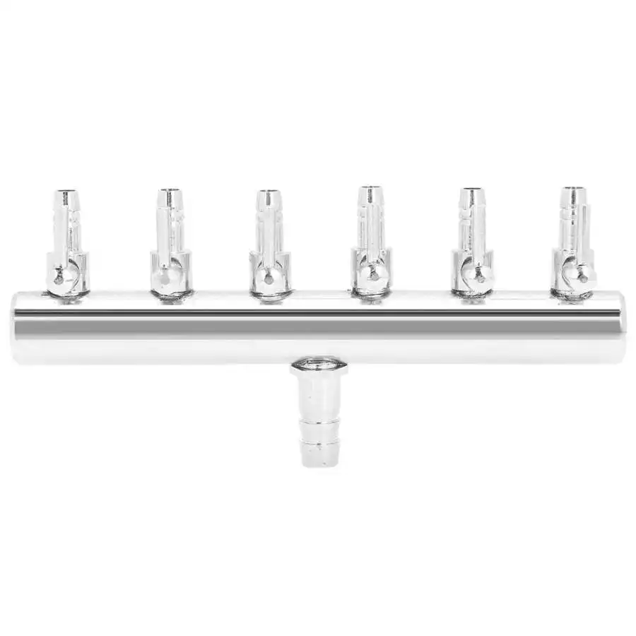 Распределитель воздуха 6 ‑Way для аквариума на солнечном питании для Управление рычаг клапана компонентов Нержавеющая сталь садок для рыбы Splitter аквариум клапан