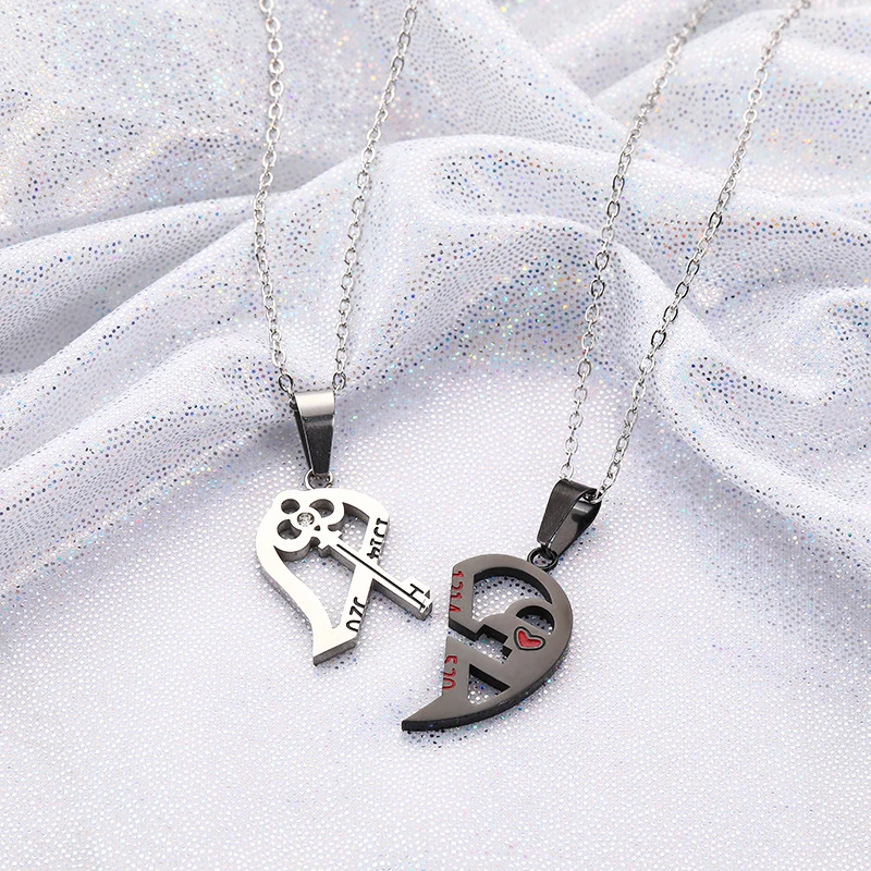 Ожерелье для пар с разбитым сердцем, 2 шт., медальон для ключей, Папа, мама, люблю вас, ожерелье с кулоном, с двойным цветов, друзья, семья, ювелирный подарок для возлюбленных
