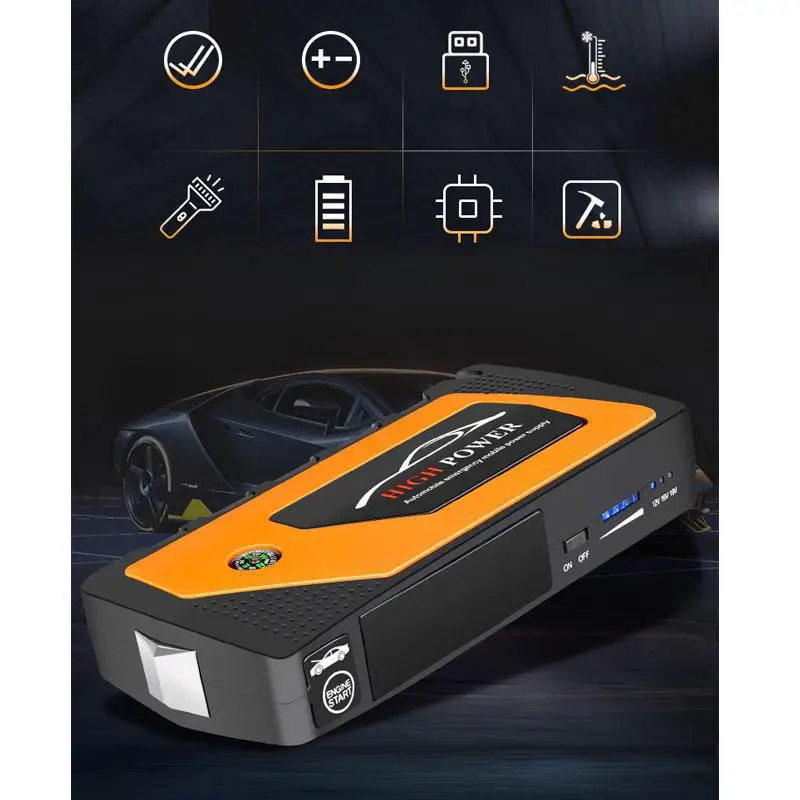 Малый размер и вес светильник; Аккумулятор высокой мощности: поддерживает быструю зарядку; Обеспечивает 12 в поддержку запуска и зарядки различных мобильных телефонов, PSP, MP3/MP4, PDA, ноутбуков, автомобильных холодильников и т. д.; Поддержка 4 Светодиодный светильник ing режимы: светильник ing режим, режим вспышки, режим SOS, предупреждающий светильник для переключения режима переключения Множественный дизайн предохранения от безопасности; Дизельное топливо и бензин универсальны.