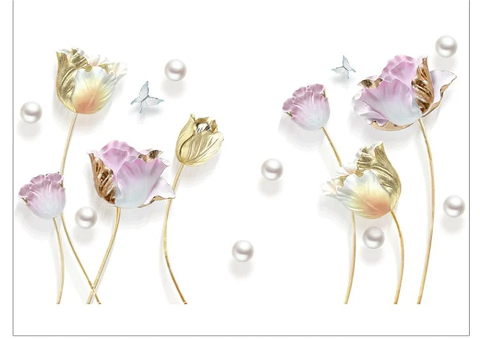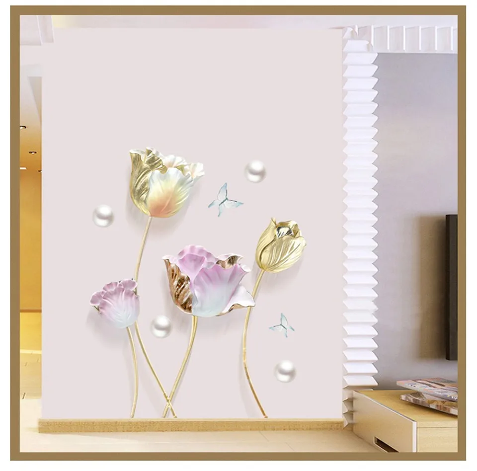 3D тюльпан цветок бабочка наклейки на стену Съемные Виниловые Гостиная ТВ фон прихожая спальня настенный художественный плакат Сделай Сам домашний декор