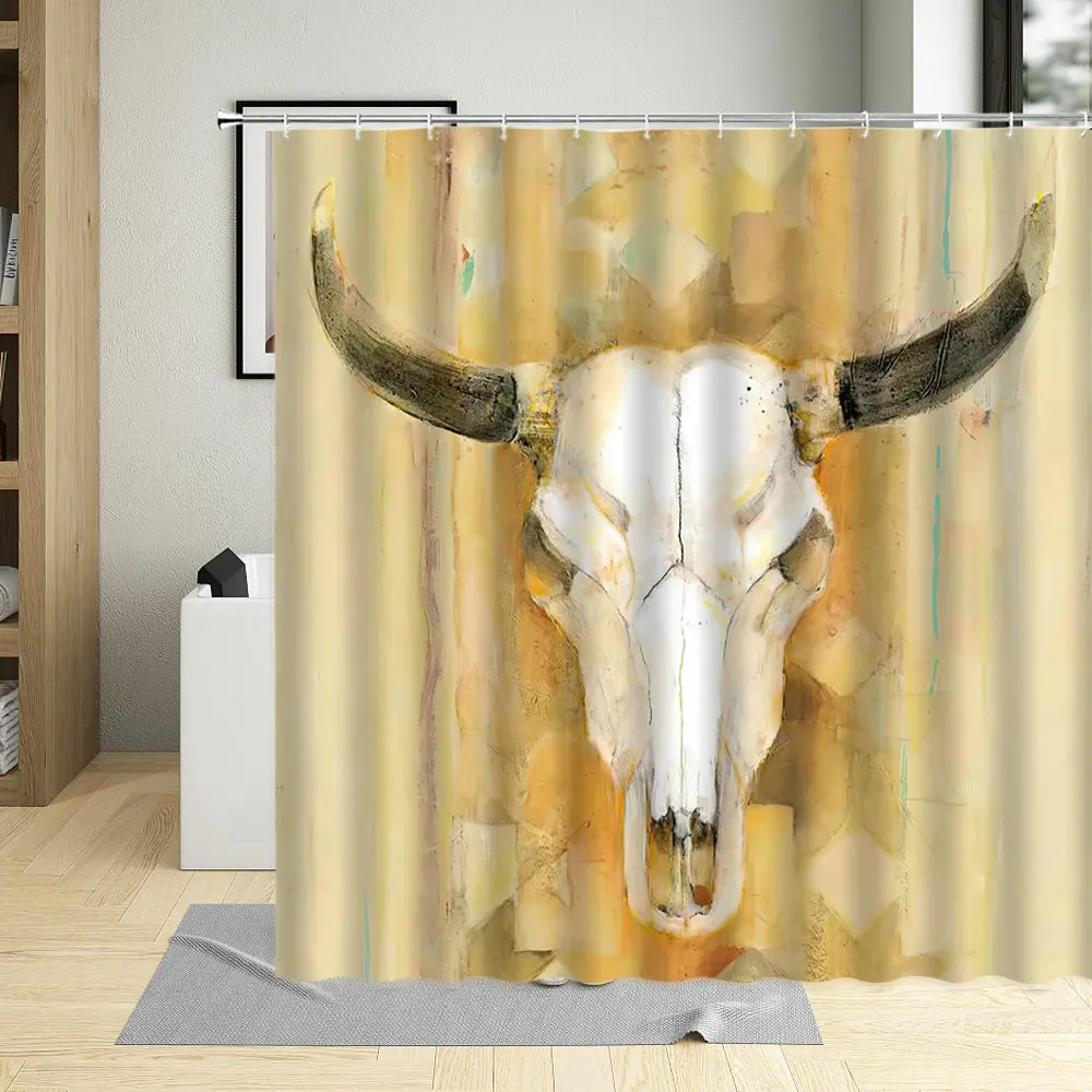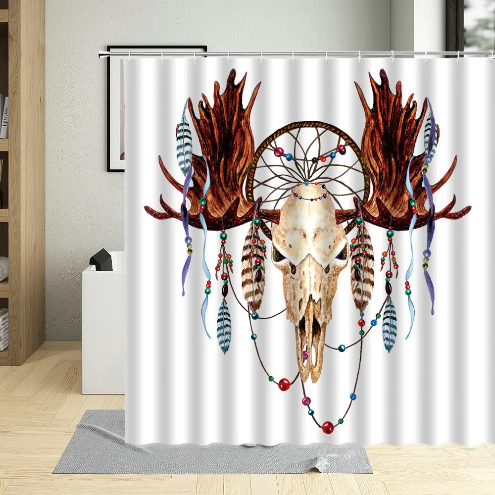 Ретро череп голова оленя Ванная Комната Занавески s рога иллюстрация Ванна Декор полиэстер ткань занавеска для душа с 12 крючками