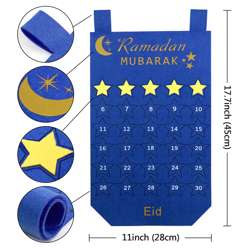 Теплый свисающий войлочный календарь Eid Mubarak с календарем на 30 дней, декор для Рамадана, обратный отсчет, календарь для детей, подарки, вечерние товары для Рамадана
