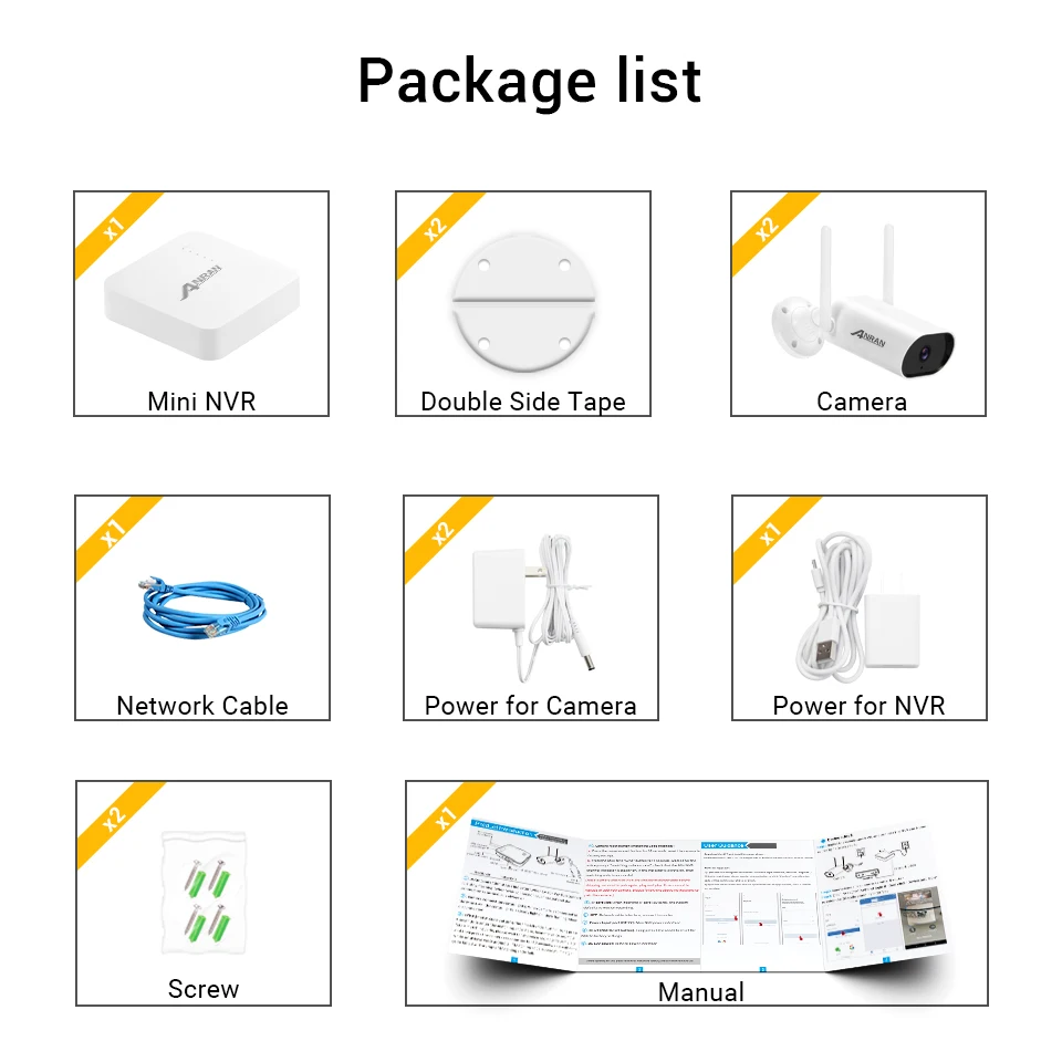 · Мы предлагаем 1,2 м адаптер питания для NVR и 2 М адаптер питания для камеры (разъем AU составляет 1,5 м), чтобы убедиться, что у вас достаточно длины для установки.