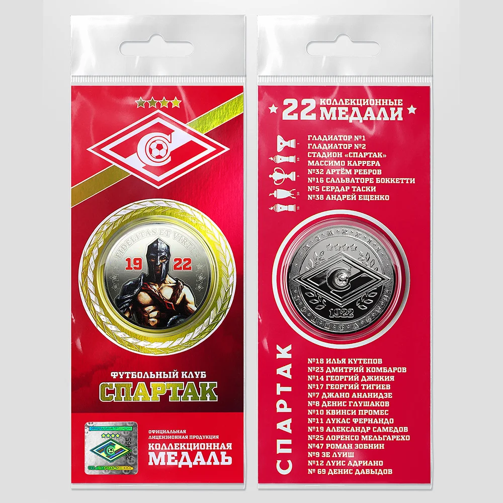 Продукция изготовлена в рамках лицензионного договора и каждое изделие защищено номерной лицензионной голограммой ФК "Спартак". Данная медаль станет отличным подарком коллекционеру и болельщику клуба! Диаметр - 40 мм. Не является платежным средством.