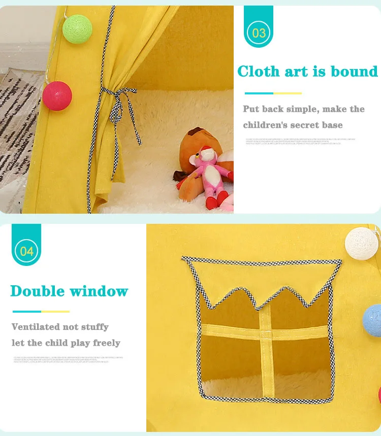 Portable Children's Tents Play House Kids Cotton Canvas Indian Play Tent Wigwam Child Little Teepee Room Decoration