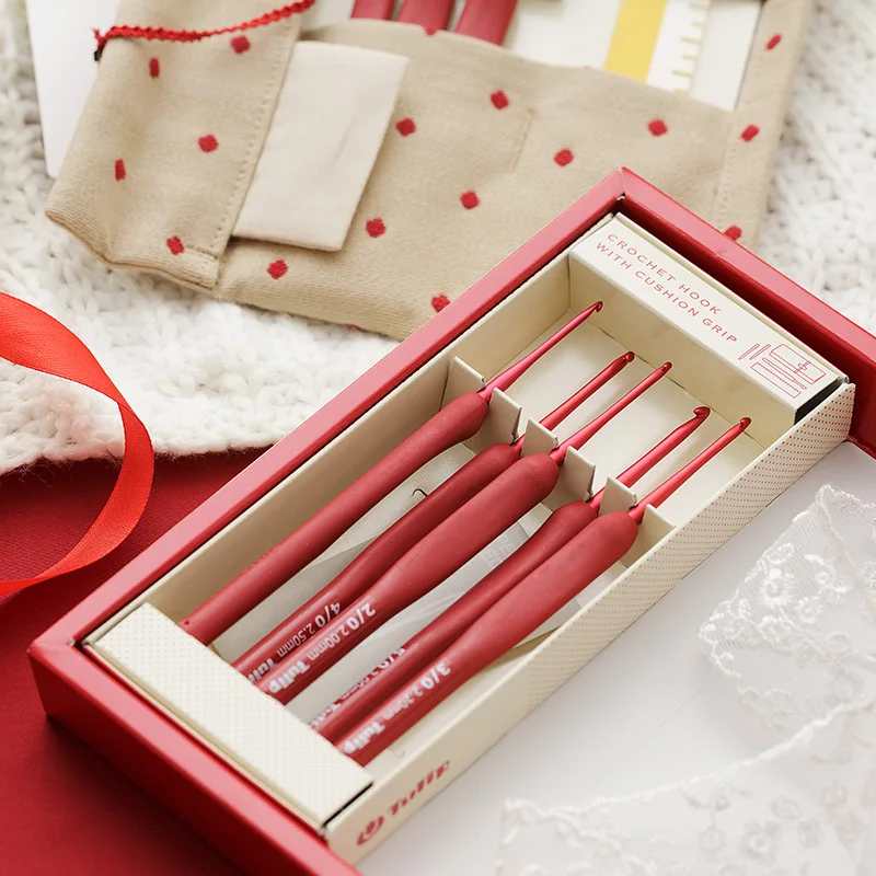 1 Set Japan Tulip ETIMO Red Brand Crochet Hook Aluminum Resin Knitting Needles Original authentic Imported from Japan 1.8-5mm