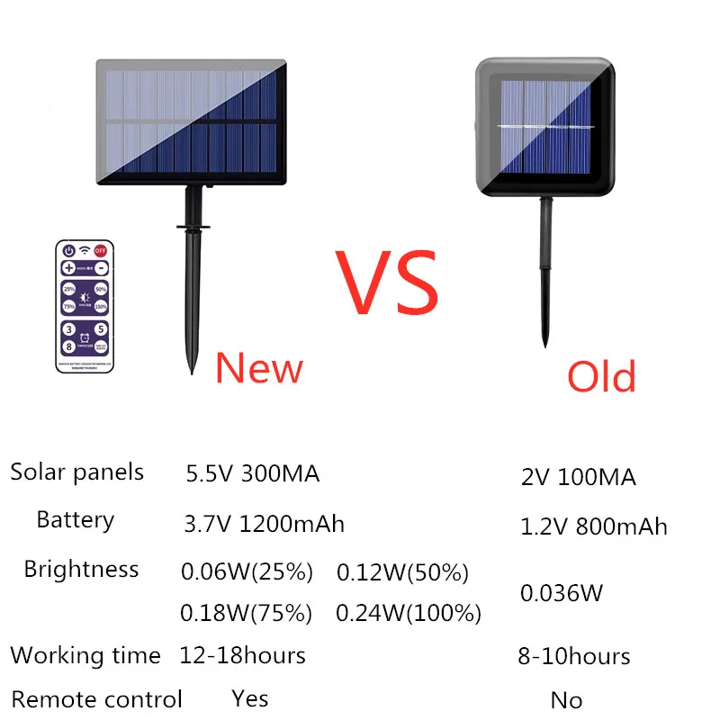 Примечание: 1. Солнечная струна имеет 2 стиля-с пультом дистанционного управления/без пульта дистанционного управления. 2. Пульт дистанционного управления является большой солнечной панелью. 3. Без пульта дистанционного управления небольшая солнечная панель. Особенности 1. Высокая яркость, низкое энергопотребление. 2. Изготовлен из высококачественного материала, прочный для ежедневного использования. 3. Непрерывная работа через солнечную энергию. 4. Энергосберегающие и экологически чистые. 5. Длительный срок службы: более 50000 часов. 6. Безопасный и экологически чистый, без излучения или элементов загрязнения. 7. Применение для украшения вашего дома, сада, Рождества, вечерние, свадебные и т. Д. 8. Способ установки: Заземление и настенное крепление. (Только удаленное соединение может быть настенным креплением) 9. Солнечный светильник является водонепроницаемым IP65 и может использоваться на открытом воздухе. Спецификация Название: светодиодный светильник на солнечной батарее Количество СВЕТОДИОДНЫЙ: 100 светодиодный/200 светодиодный/300 светодиодный/500 светодиодный Общая длина: 12 м/22 м/32 м/52 м Режим: 8 режимов освещения Яркость: 4 Регулировка яркости Водонепроницаемость: IP65 Светодиодный Цвет: Теплый/белый/Разноцветный