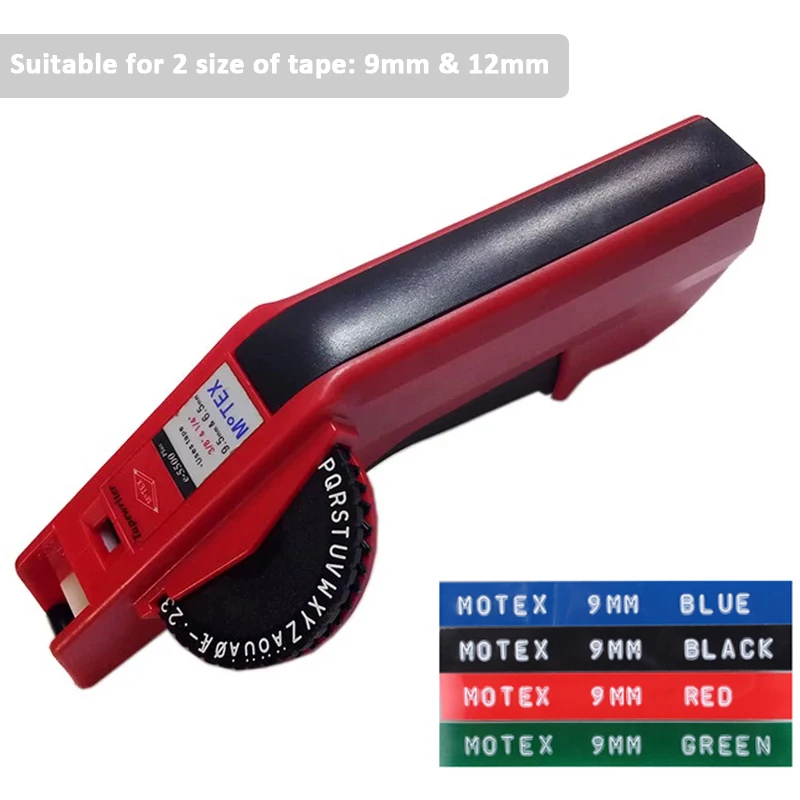 Name: manual engraving label printer -Article number: E-5500B -Material: ABS,Plastic -Color: Red/Black - Tape size: 9mm and 12mm