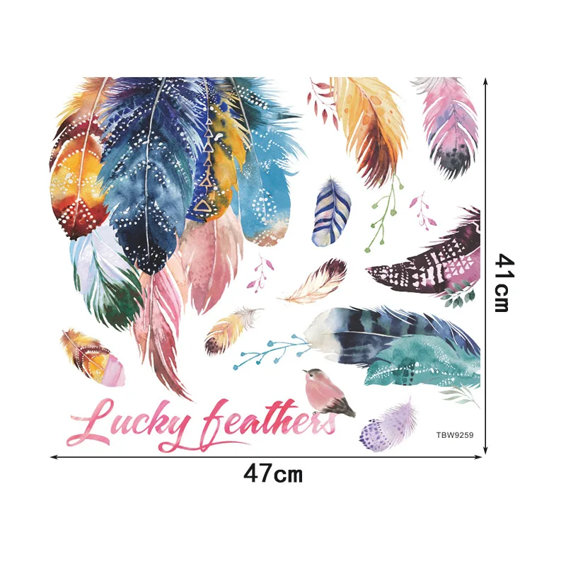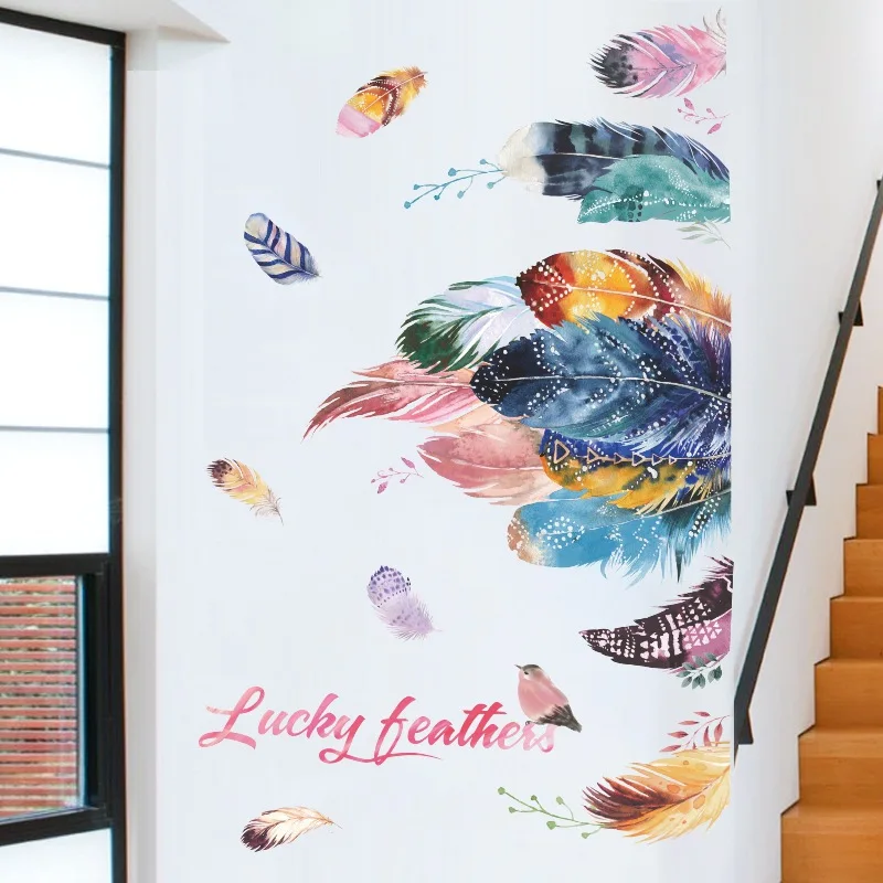 Новые цветные наклейки на стену с перьями для дома, гостиной, фоновое настенное украшение для спальни, наклейки, расписанные граффити, Детские Настенные обои