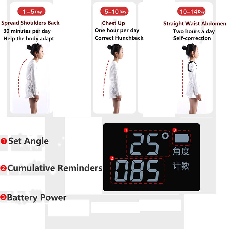 2. Когда угол горлышка превышает заданный угол, Корректор осанки автоматически вибрирует, чтобы напомнить вам.