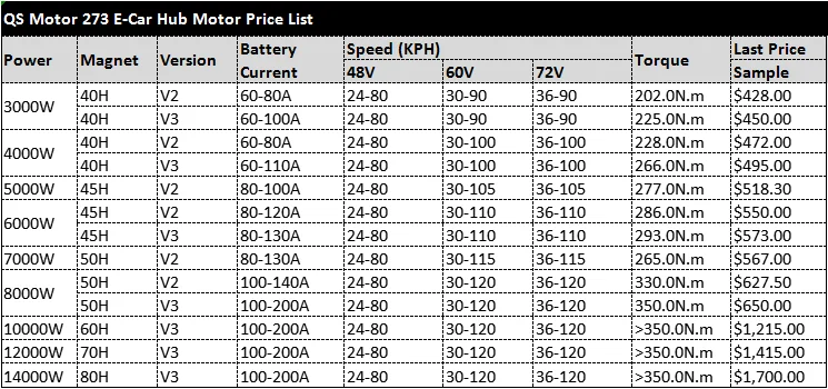 QS мотор 2733000 Вт-14000 Вт электронная Автомобильная ступица список моторов