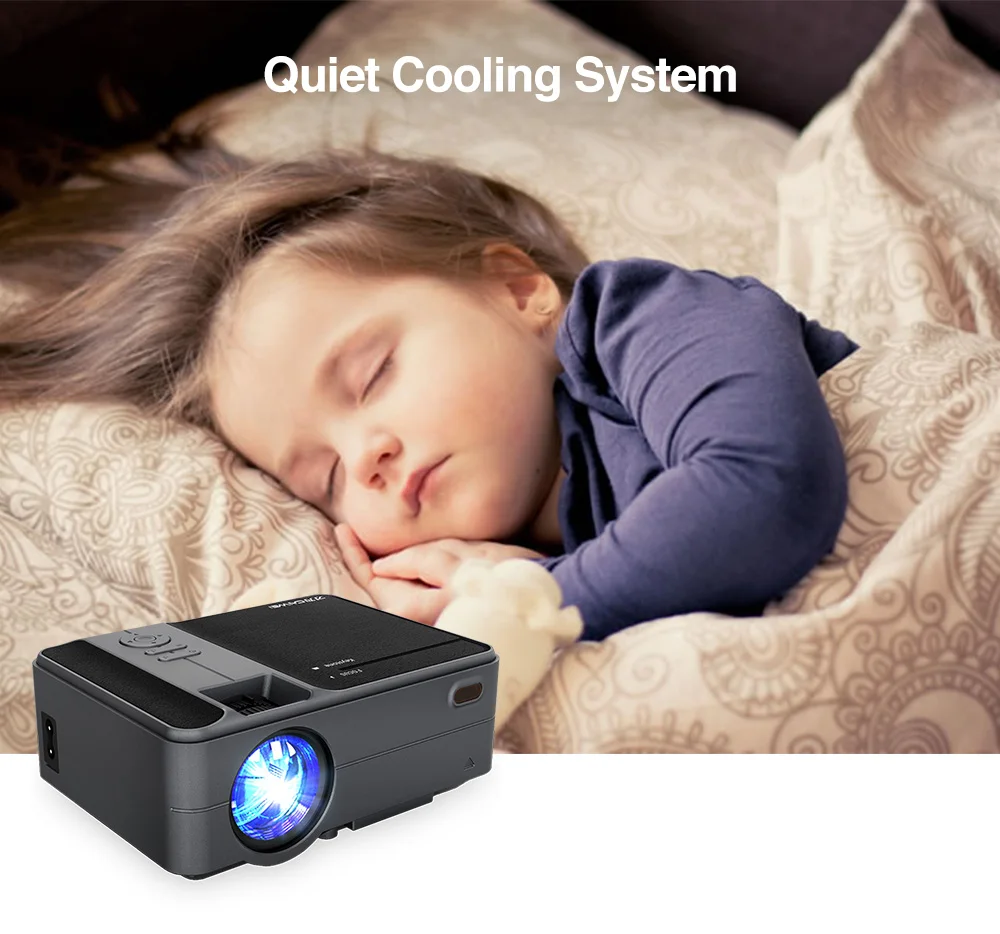 Этот проектор обновляет технологию шумоподавления и имеет быстрый отвод тепла, даже если вы используете его в течение длительного времени, он не будет нагреваться, просто немного греться.
