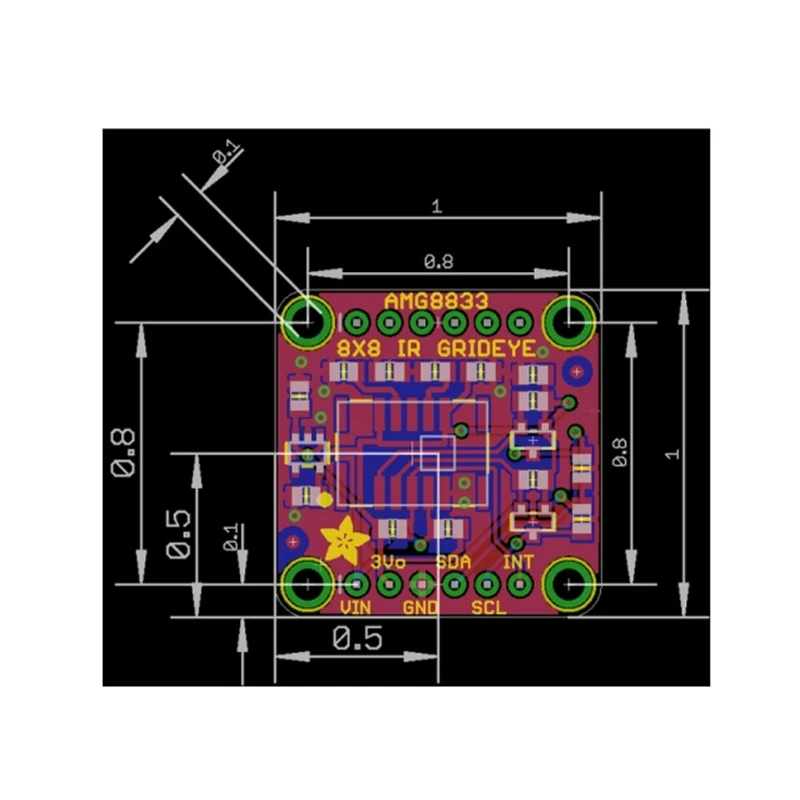 AMG8833 датчик тепловизионной камеры представляет собой ИК-датчик 8x8. При подключении к микроконтроллеру он вернет набор из 64 отдельных инфракрасных показаний температуры через I2C. Это похоже на эти необычные тепловизионные камеры, но компактные и простые для легкой интеграции. Датчик поддерживает только I2C и имеет настраиваемый штырь прерывания, который может срабатывать, когда любой пиксель выше или ниже порога, который вы устанавливаете.