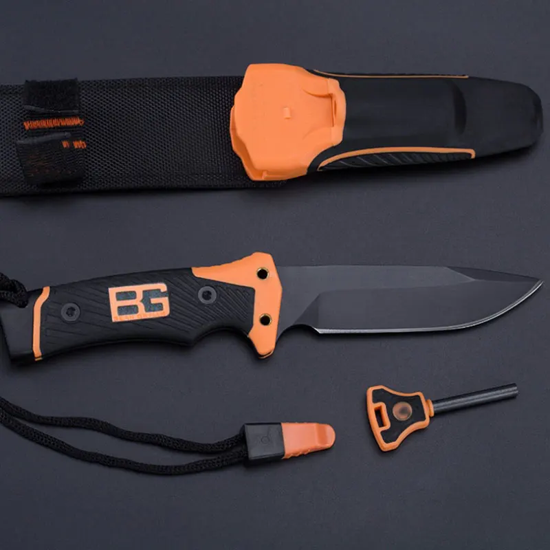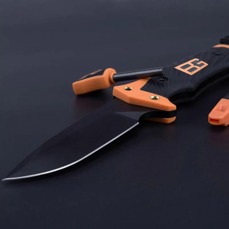 Название продукта: складной нож для выживания на поле Полная длина: 25,5 см Длина лезвия: 12 см Толщина лезвия: 0,5 см Вес: 240 г Материал лезвия: 5CR15MOV Твердость: 58HRC Материал ручки: Нескользящая Резина Аксессуары: ножны, зажигатель, v-образная профессиональная точилка
