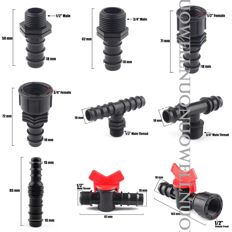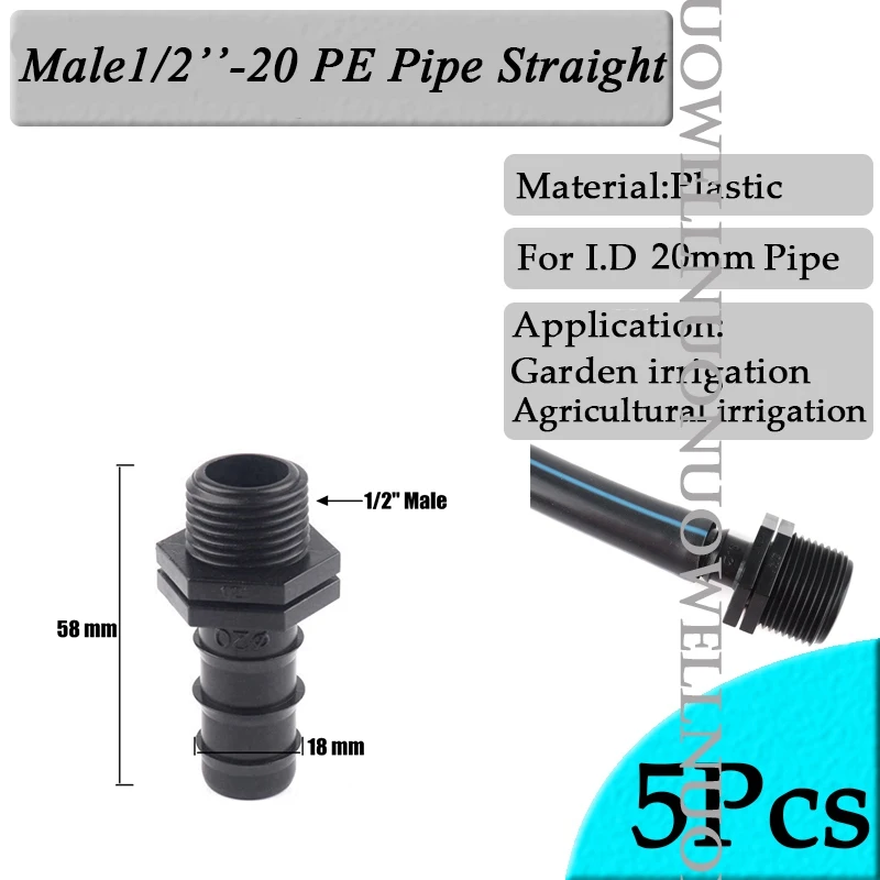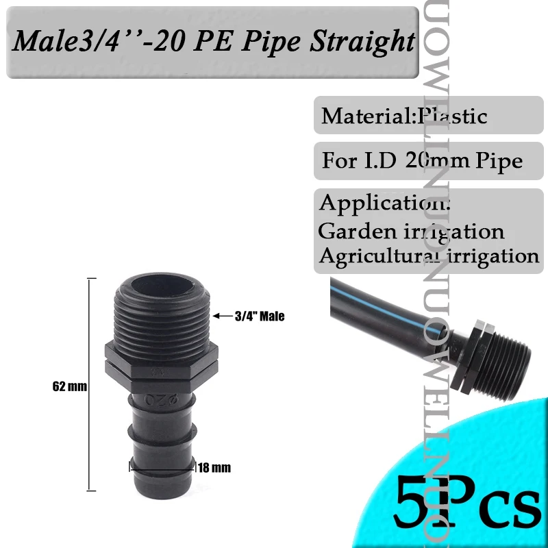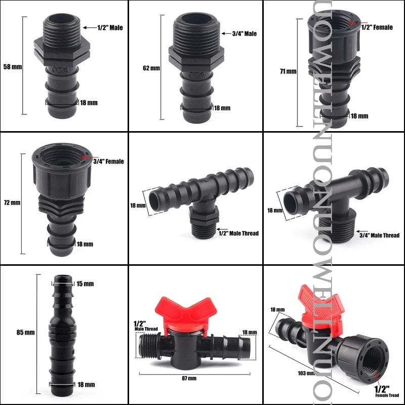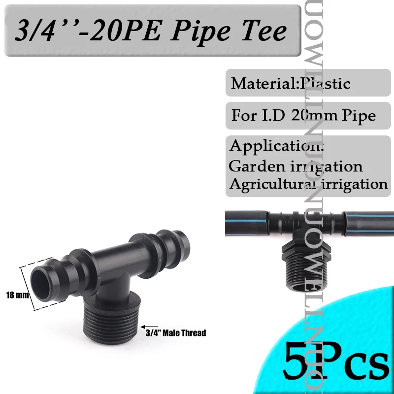 5 шт./лот 1/2 "3/4" Мужской Женский резьбовой соединитель для Barb 20 мм PE трубы адаптер садовые орошения аксессуары пластиковые Vavle Тройник