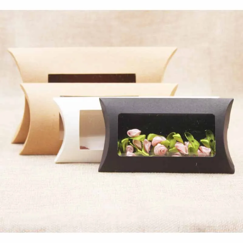50 шт. крафт-бумага коробка Подушка Коробка для конфет из ПВХ DIY свадебные подарочные коробки с прозрачным окном Детские вечерние украшения для дома на день рождения