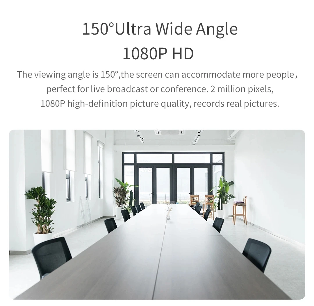 -1080P HD и 150 ° ультра широкий угол обзора 150 °, экран может вместить больше людей, идеально подходит для прямой трансляции или конференции. 2 миллиона пикселей, 1080P высокое качество изображения, запись реальных фотографий.