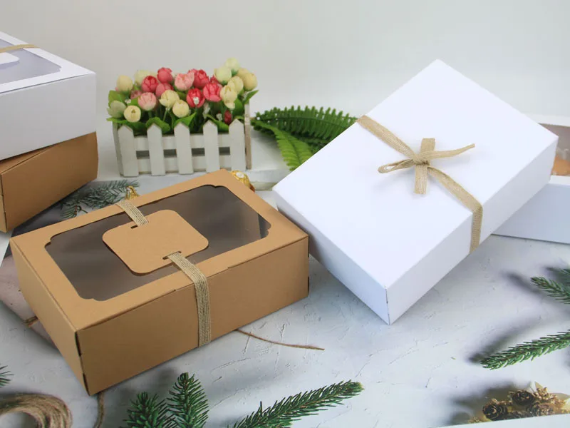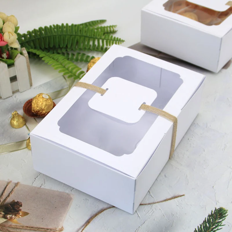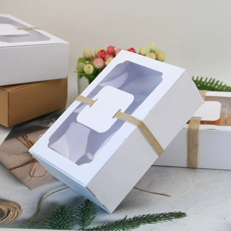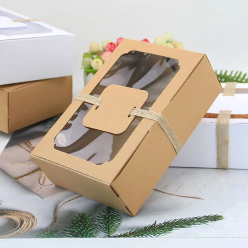 12 шт., Подарочная коробка из крафт-бумаги, Подарочная коробка, ПВХ, прозрачное окно, печенье, лечит, коробки, Рождество, Новый Год, свадьба, вечеринка, украшение