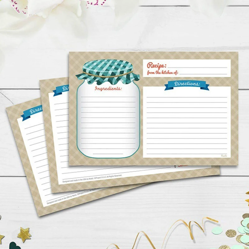 4. Идеально подходит для дома, подарка или свадебного душа: Поделитесь рецептами, записывайте Семейные Рецепты, используйте в книге рецептов, связке рецептов, обложках рецептов, держателе рецептов, или по рецепту по размеру коробкой 4x5,6 карты рецепта. Идеально подходит для праздников и приглашений!