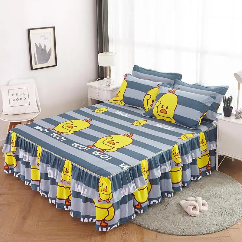 Комплект постельного белья из 3 предметов с принтом, Мягкая юбка-кровать с наволочками, покрывало, покрывало, постельное белье размера «Queen» и «King»