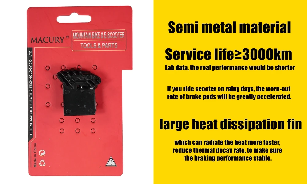 * Service life≥3000km(Lab data, the real performance would be shorter). If you ride scooter on rainy days, the worn-out rate of brake pads will be greatly accelerated.