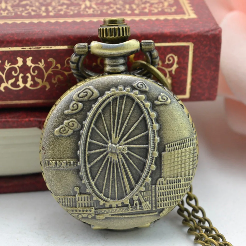 Ретро Бронзовый дизайн карманные часы кварцевые кулон ожерелье подарок
