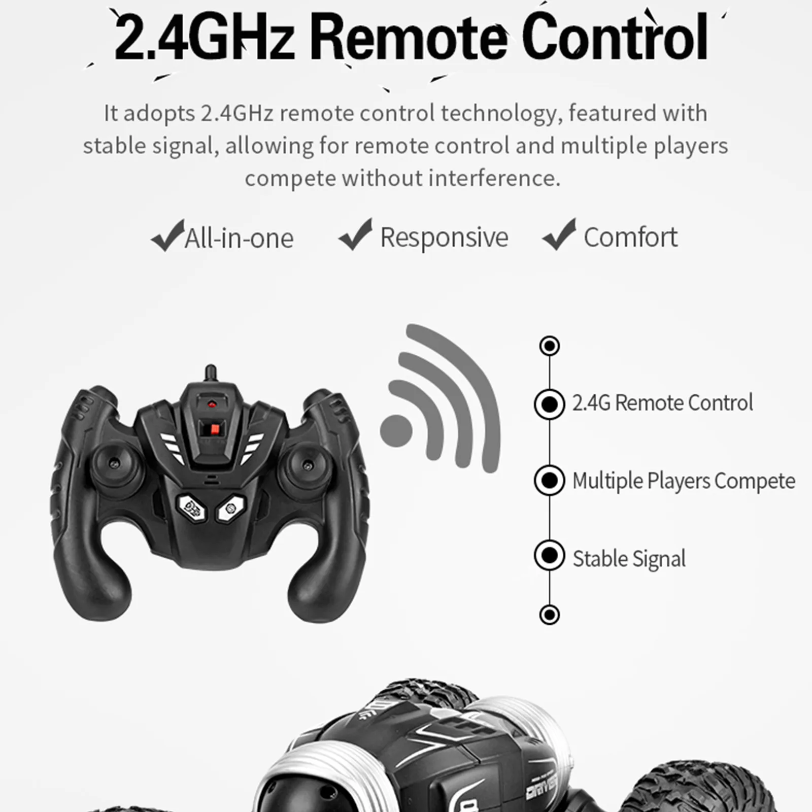 2,4 ГГц радиосистема с отличную устойчивость к помехам, обеспечивая качественное Расстояние управления 50 метров