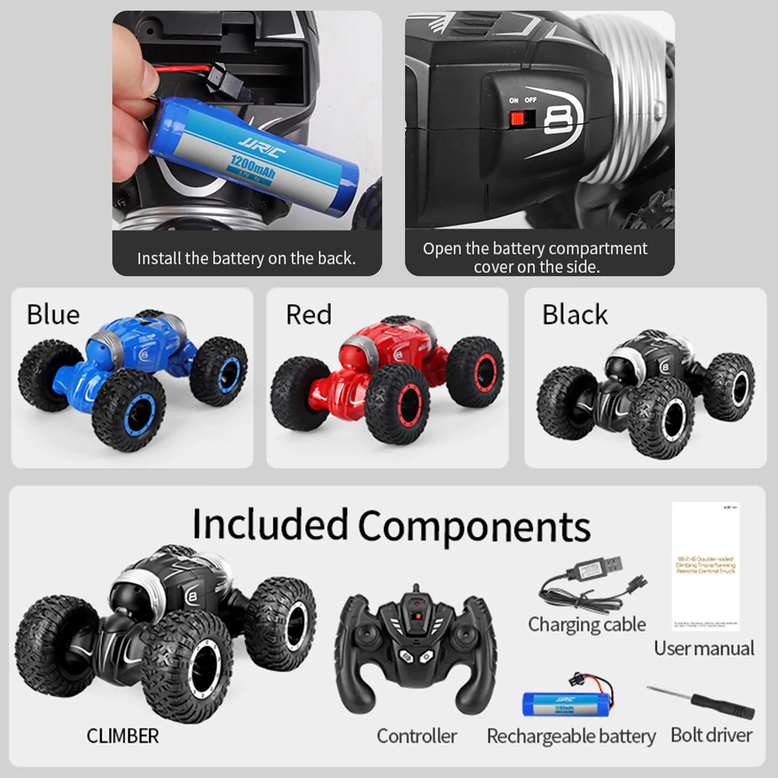 Нескользящие и износостойкие резиновые шины создают значительное сцепление с Наземная и покоряющая сложную местность.