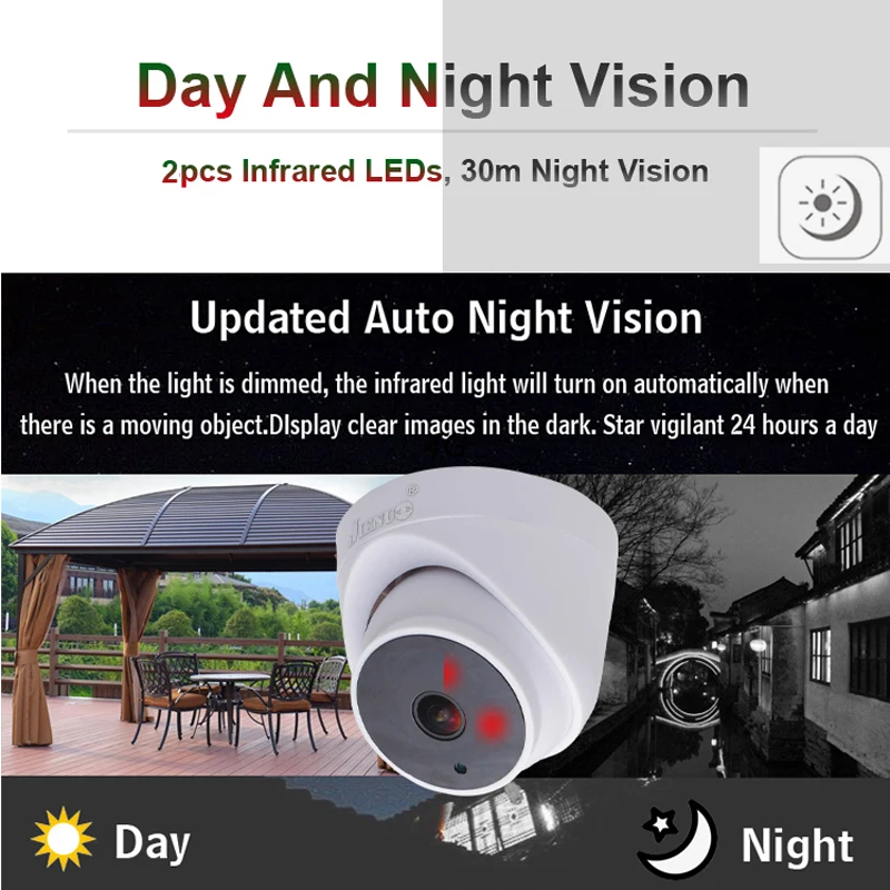 Смотрите все в деталях с true HD. Получайте более четкие и четкие изображения/видео, чем другие ip-камеры Wi-Fi. Благодаря исключительному ночному видению вы можете четко видеть даже в темноте. Днём и ночью цзянуо не перестанет защищать вас. Вы также можете проверить, есть ли у вашего ребенка сладкий сон на вашем мобильном телефоне Условия эксплуатации: -45 °C ~ 60 °C, влажность 95% или менее (без конденсации)