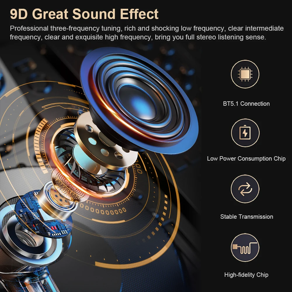 Технология BT 5,1 обеспечивает более высокую скорость передачи данных, более стабильную производительность и низкое энергопотребление. С технологией TWS, левый и правый каналы наушников разделены. Вы можете использовать наушники исключительно или в паре. Автоматическое Быстрое Сопряжение между левыми и правыми наушниками при выводе из зарядного устройства. Легко и быстро соединяется с аудиоустройствами с поддержкой BT. Оснащен зарядным устройством емкостью 1200 мАч для зарядки наушников. Встроенный микрофон обеспечивает более четкий и реальный говорящий звук. Это принесет вам идеальный пользовательский опыт.