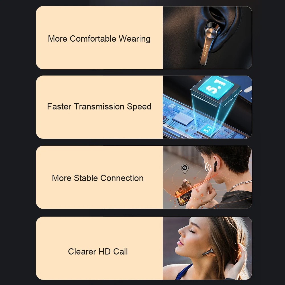 Беспроводной дизайн с двумя ушками, вы можете использовать наушники исключительно или в паре. BT 5,1 обеспечивает более высокую скорость передачи данных, более стабильное соединение и более низкое энергопотребление.