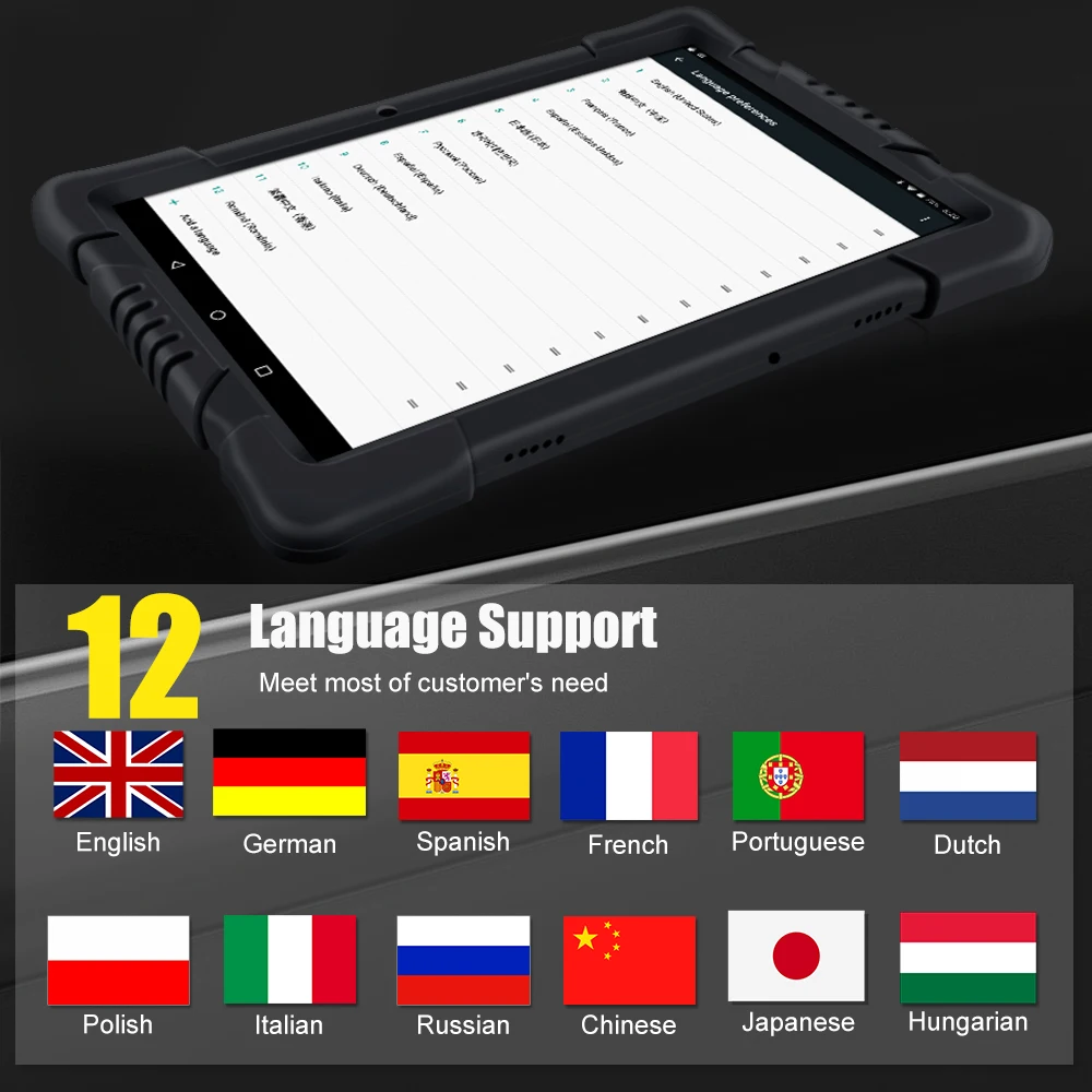 1. Высокое качество 10,1 дюймов планшет Большой экран с гладкой работой, 4-ядерный процессор с 4 Гб DDR3. 64GB хранилище, быстрый доступ к умной диагностике. Не нужно устанавливать программное обеспечение, все было сделано перед отправкой. 2. Полная диагностика системы Полная система быстрого сканирования для легковых автомобилей, глубокая диагностика на всех электронных системах автомобиля с подробным отчетом, считывание/четкие коды, живые данные, тест на приведение в действие и т. Д. 3. Расширенный сервис сброса Сброс масла, TPMS, ABS, SAS, TPS, DPF, EPB, испытание батареи, инжектор Отрегулируйте все, чтобы удовлетворить ваши дополнительные требования. 4. Профессиональное ключевое Программирование Профессиональный и удобный IMMO, добавьте новый ключ, Стирайте ключи, программируйте ключи, все ключи потеряны через OBD... 5. Широкое покрытие транспортного средства Мощная поддержка более 85 автомобильных брендов, включая американские, европейские, австралийские, азиатские автомобили. 6. Бесплатная загрузка и обновление Бесплатная загрузка и обновление для широких моделей автомобилей в App Store программного обеспечения. Никаких других сборов с пожизненным бесплатным обновлением с более мощными версиями. 7. Поддержка нескольких языков Переключение языка, который вам нужен, в приложении свободно, английский, итальянский, немецкий, русский, французский, испанский, голландский, португальский, венгерский, польский, японский, традиционный китайский. 8. Непрерывно выпускает новые функции В настоящее время разрабатываются более продвинутые функции для более позднего выпуска, такие как кодирование и программирование ECU, более Поддерживаемые модели и т. д. все можно обновлять постепенно. 9. Удобный опыт Быстрый доступ к удаленной помощи, значку «Отзывы», запросу VIN, запросу DTC, управлению данными, воспроизведению данных и т. д. полностью обеспечит вам умную и удобную работу.