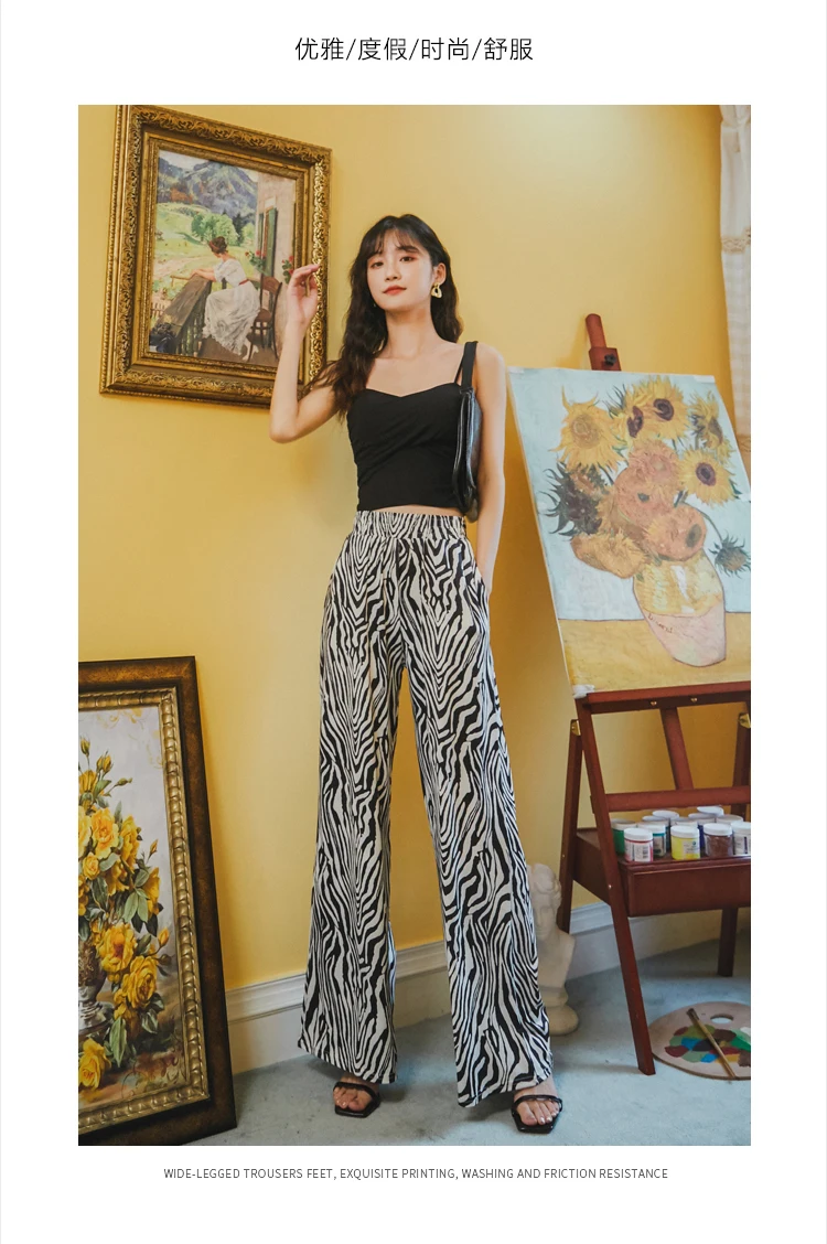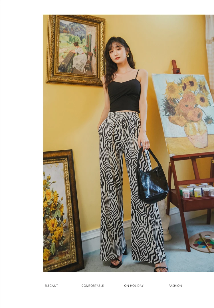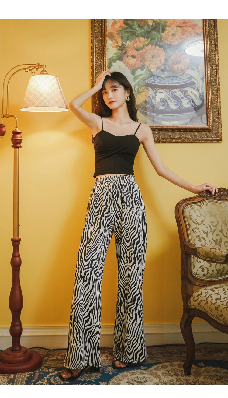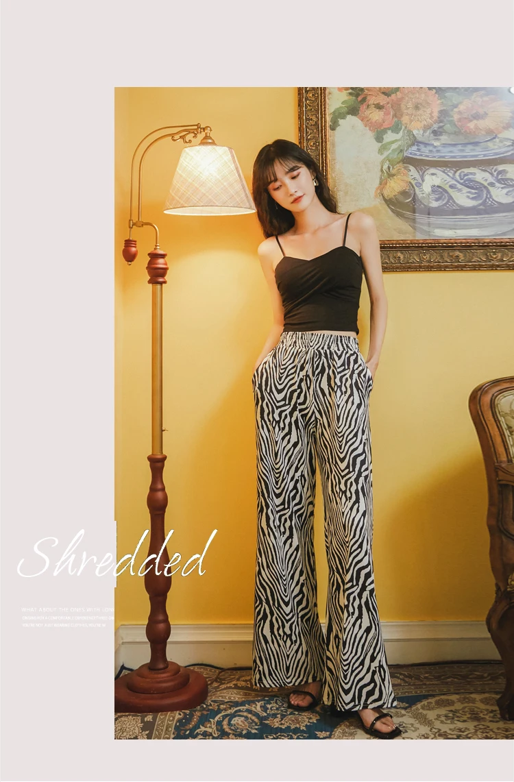 Женские широкие брюки TingYiLi, винтажные уличные брюки черного и белого цвета с принтом зебры, повседневные свободные летние широкие брюки в Корейском стиле
