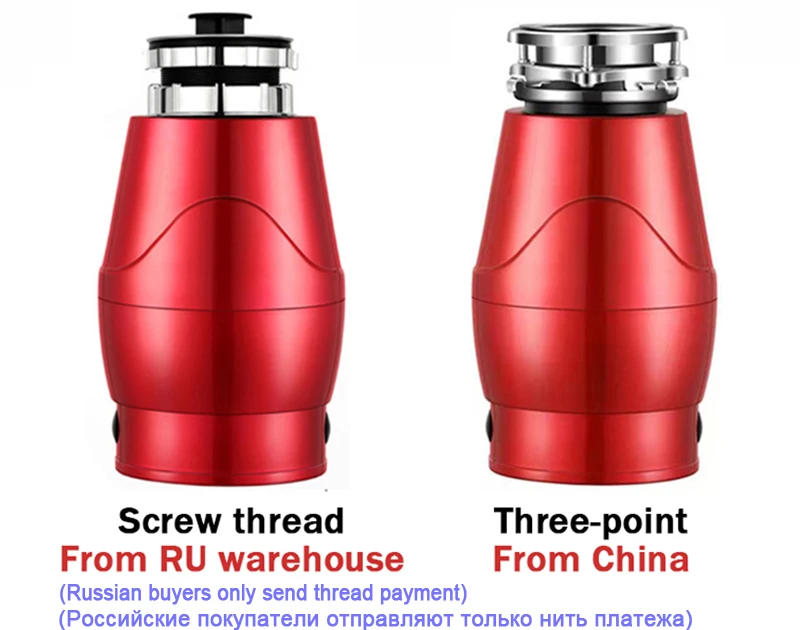 그림에서 볼 수 있듯이 쓰레기 처리기는 외관과 구별되며 나사 식과 3 점식의 두 가지 스타일이 있습니다. 기능과 힘은 똑같지 만 설치 방법이 다르기 때문에 외관이 조금 다릅니다. 러시아 해외 창고에서 준비한 기계는 나사 가공 기계이므로 러시아에서 출하되는 기계는 나사 가공 기계입니다. 처음에 우리가이 나사산 기계를 판매했을 때 일부 구매자는 기계 설치가 간단하고 편리하기를 희망한다고보고했습니다. 이 나사산 기계는 설치가 매우 편리하며 구매자가 설치하지 않으면 이메일로 설치 영상을 보낼 수 있습니다. 그러나 당사의 기계는 지속적으로 최적화되고있어 외관이 변경되었습니다. 더 나은 프로모션을 위해 제품 페이지의 메인 화면을 3 점 기계로 수정했습니다. 러시아 해외 창고의 재고가 매진되면 당사는 향후 3 점 기계 판매에 주력 할뿐만 아니라 더 많은 구매자가 3 점 기계를 수용 할 수있게 될 것입니다. (3 점 설치 영상은 제품 페이지에 있습니다.)