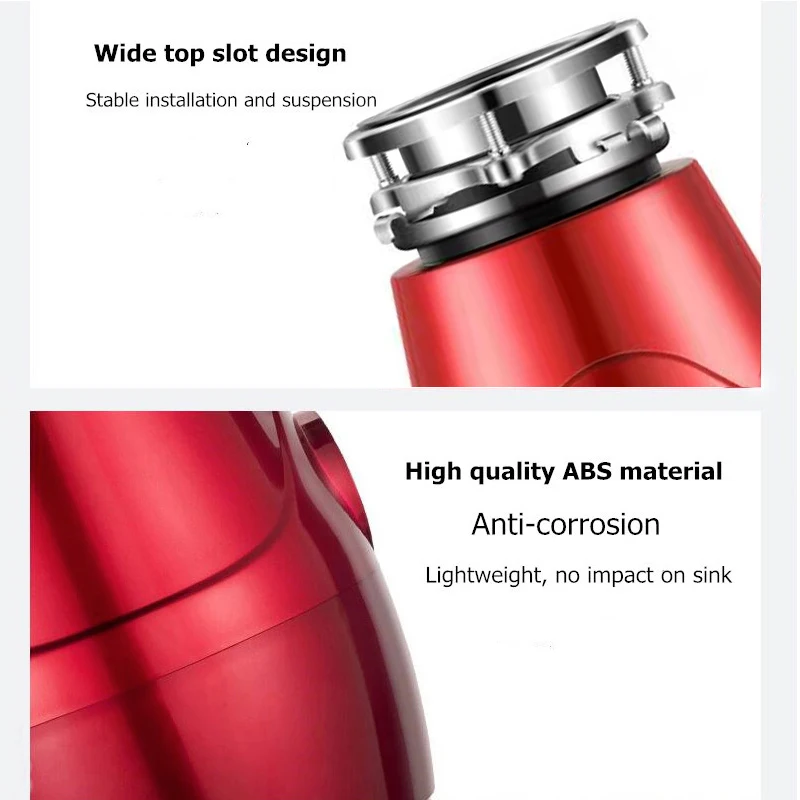 Высококачественные и долговечные материалы: Благодаря высококачественному АБС-пластику и нержавеющей стали, утилизация мусора устраняет утечку или электрический шок и эффективно предотвращает появление бактерий. Сверхмощное стальное лезвие для измельчения делает мусор достаточно маленьким. Этот аппарат длится долгое время в любом состоянии. Вам не нужно управлять им более 5 минут каждый раз.