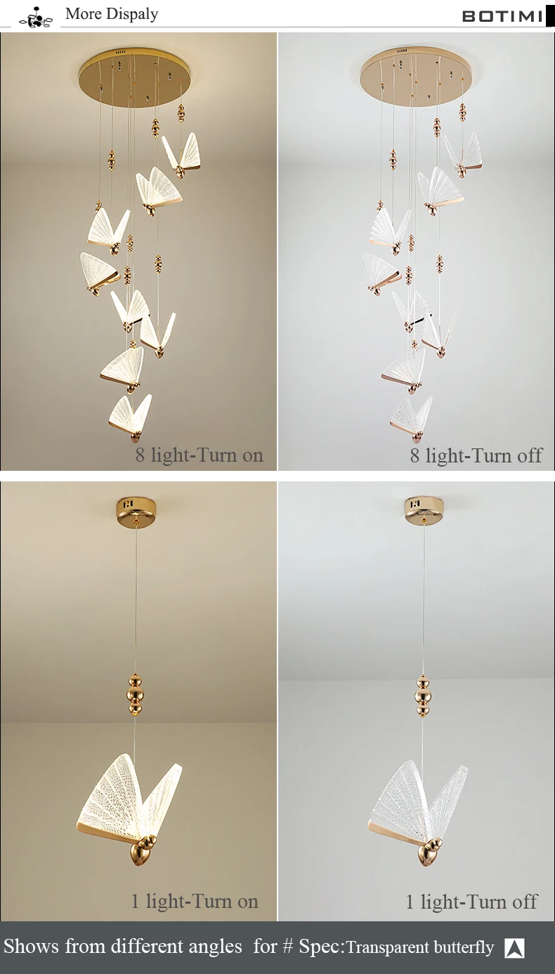 BOTIMI современные Красочные бабочки подвесные светильники для лофт отель лестница золотые люстры обеденный блеск прозрачный прикроватный подвесной светильник