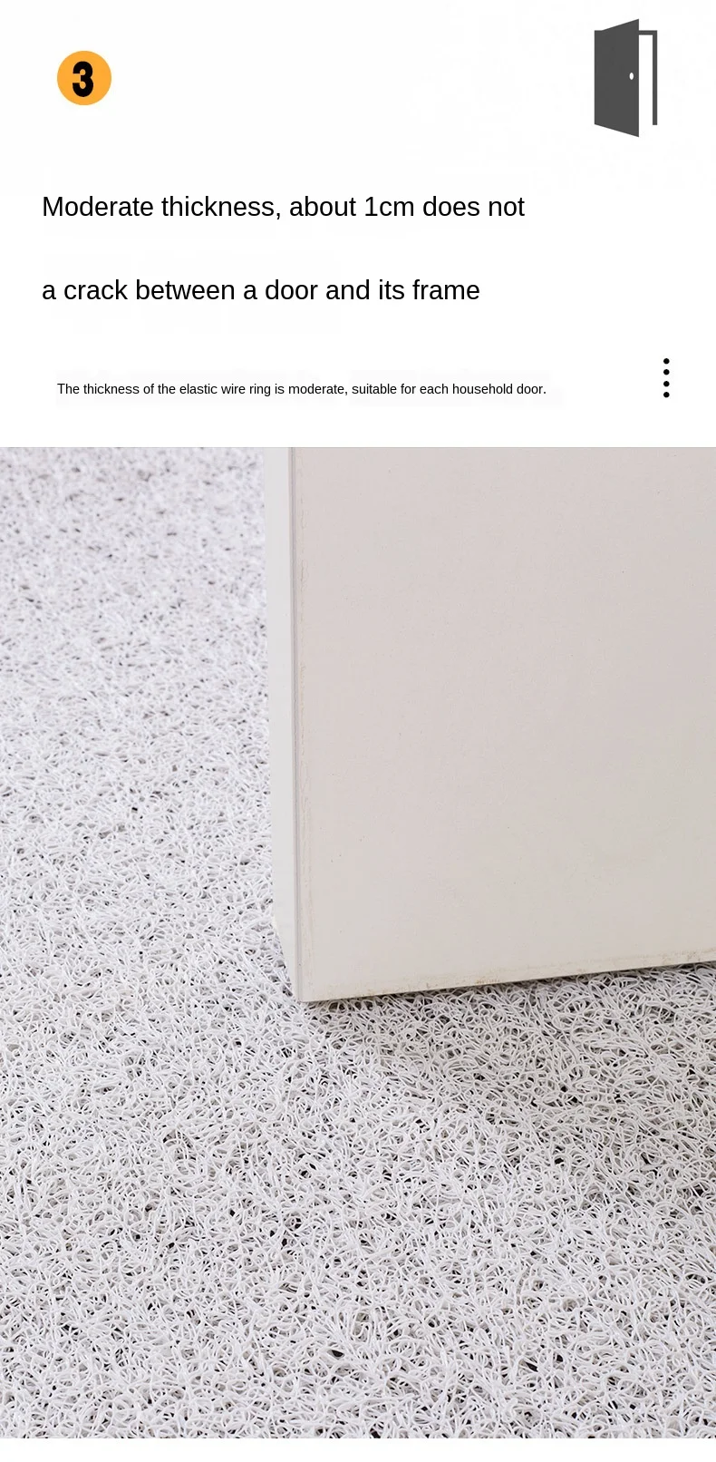> Толщина коврика составляет около 8 мм, он может полностью лежать на полу и не мешать открытию и закрытию двери.