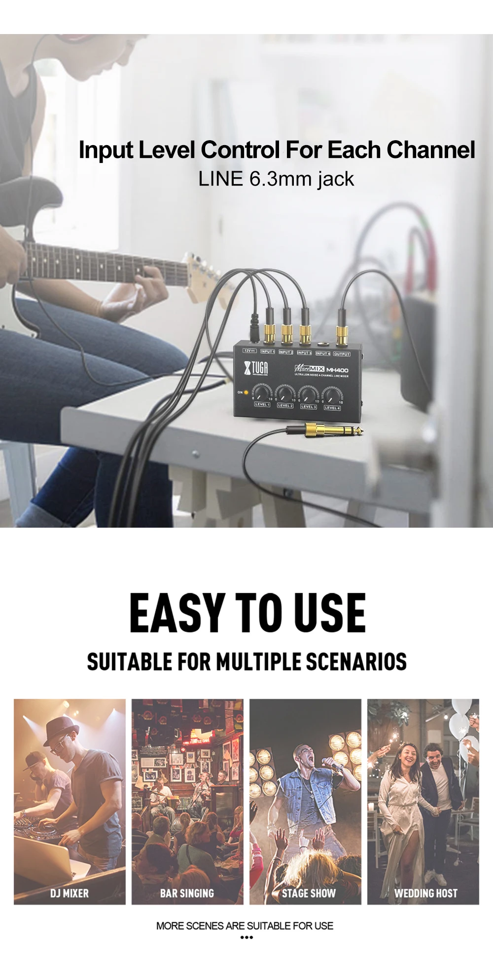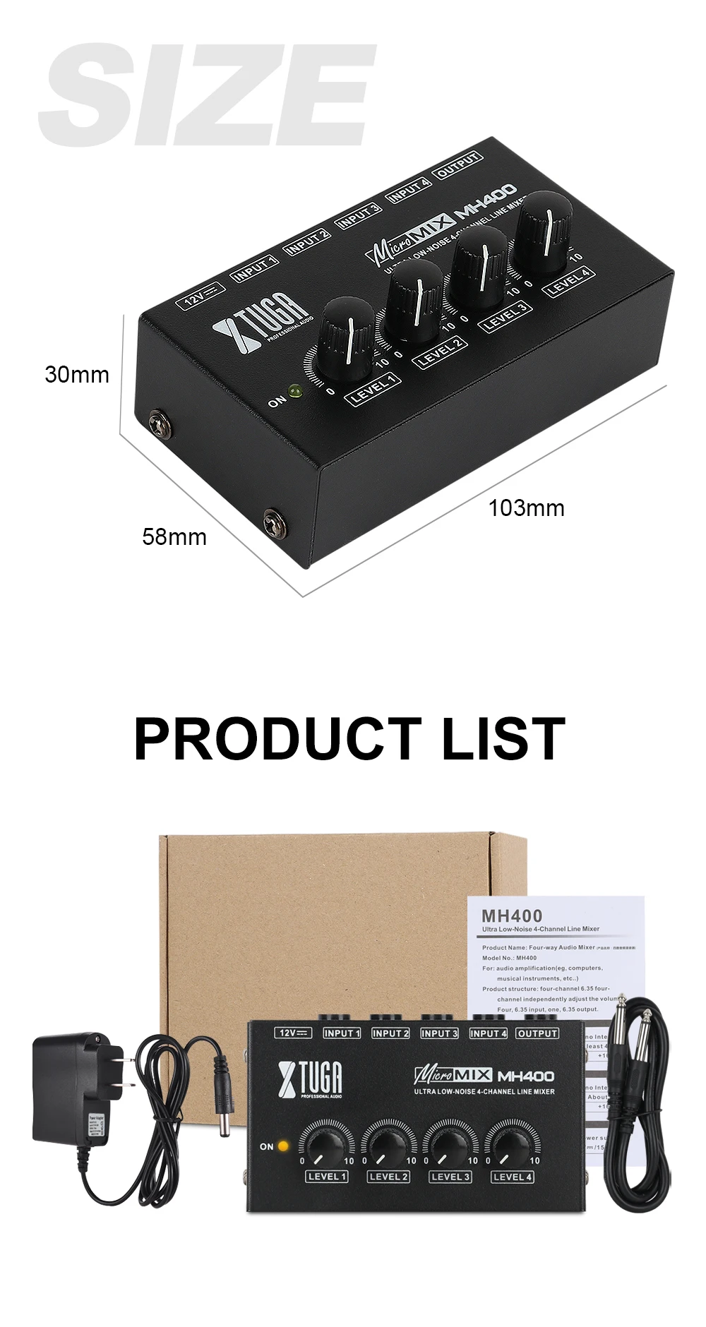 Структура продукта: четырехканальный 6,35 четырехканальный самостоятельно регулировать громкость; Четыре 6,35 вход переменного тока, один 6,35 выход.