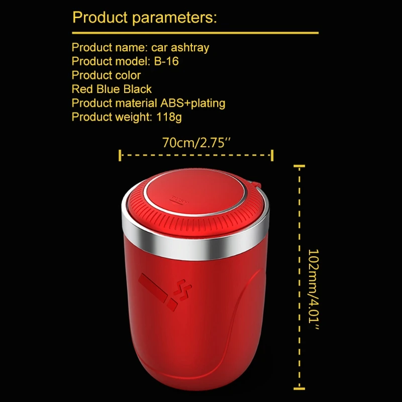 1. The car ashtray comes with LED lights, which can be used in the dark and will not let the ashes fall off.