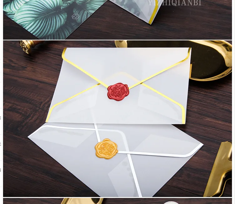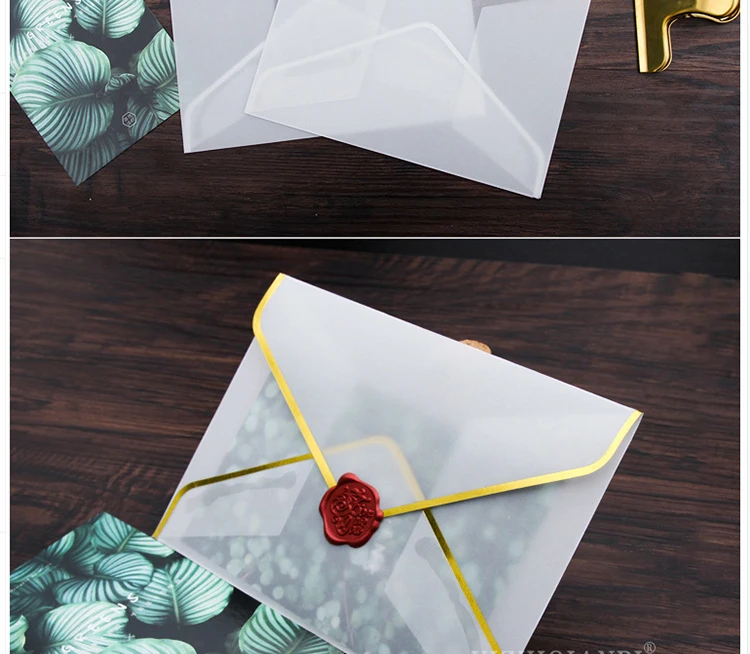 Название: 5 шт./компл. бумага с серной кислотой с бронзовым краем целлофановый конверт для свадебных приглашений, поздравительные открытки, подарки с надписью