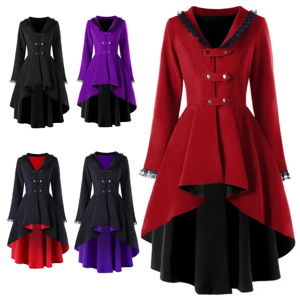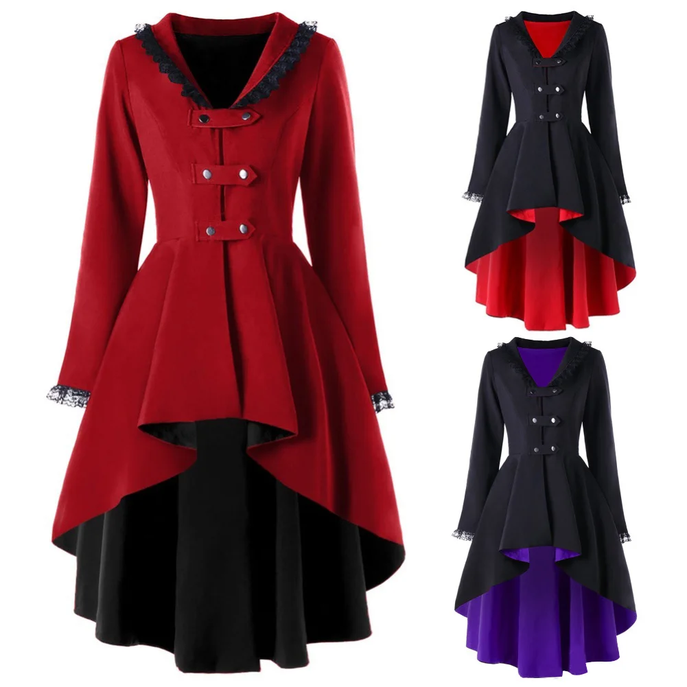 Женская готическая Асимметричная кружевная верхняя одежда с длинным рукавом и пуговицами