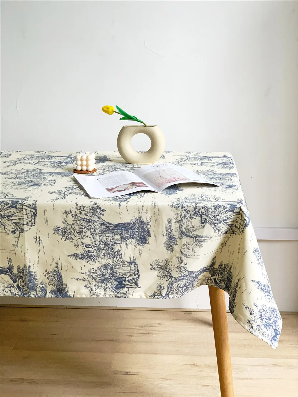 Французская винтажная скатерть с синими чернилами, пасторальная скатерть, Корейская скатерть для пикника, кухонная скатерть, реквизит для фото, домашний декор