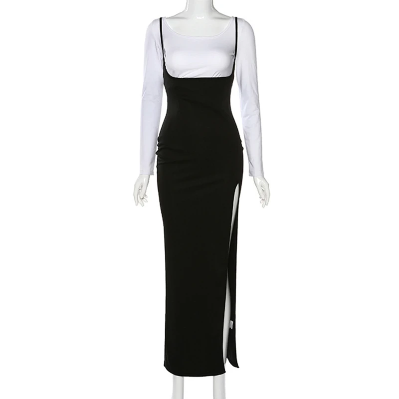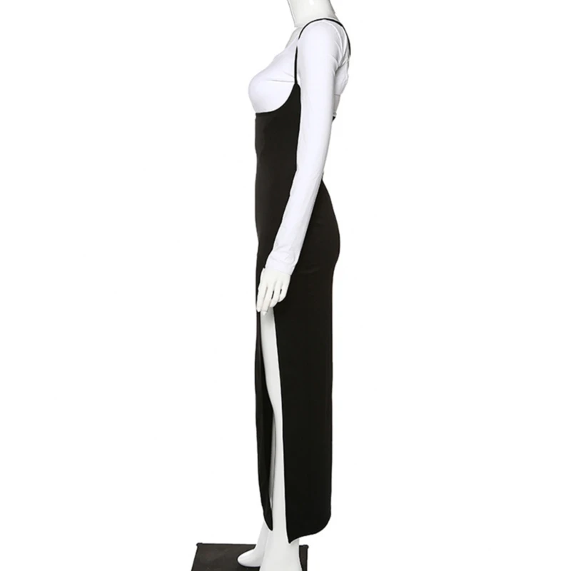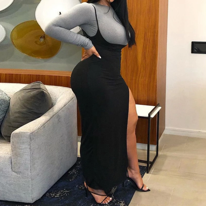Сексуальная черная юбка на подтяжках с высокой талией, Женская длинная юбка макси с разрезом, весна-лето 2020
