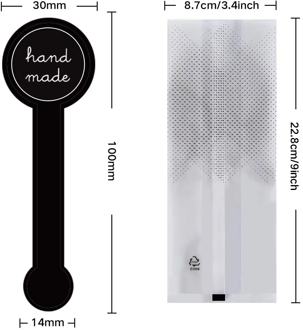 Материал: Пластиковые полупрозрачные пакеты. Эта Упаковочная Сумка-это плоские пакеты, которые не имеют функции самоклеящегося уплотнения. Размеры: Пластик сумки: 3,4 дюймов x 9 дюймов, наклейки: 1,2 дюймов x 3,9 дюймов. Посылка включает в себя: 100 шт пакетов для печенья с 100 черными наклейками и 1 рулон белой ленты. Профессиональный вид: каждый мешок для выпечки поставляется с украшением в черную точку, отлично подходит для домашнего печенья. Применение: идеальные сумки для конфет для Дня Святого Валентина, дня рождения, школьных мероприятий, свадьбы, Рождества, Дня благодарения, упаковки изделий ручной работы или любых других особых случаев.